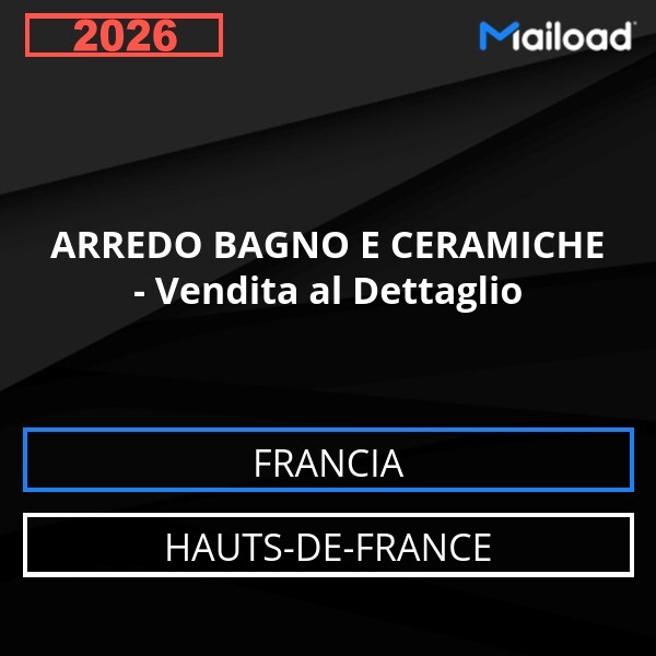 Il Database Email ARREDO BAGNO E CERAMICHE – Vendita al Dettaglio (Hauts-de-France – Francia) contiene 41 contatti aziendali unici, completi di indirizzo email e pronti all’uso per attività di Email Marketing B2B.