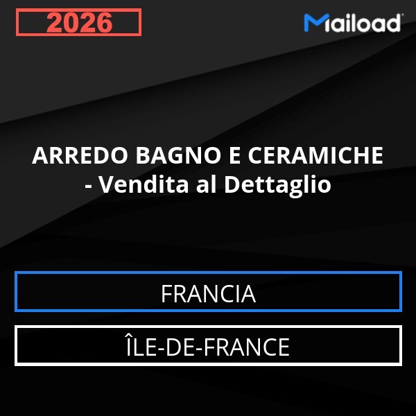 Il Database Email ARREDO BAGNO E CERAMICHE – Vendita al Dettaglio (Île-de-France – Francia) contiene 110 contatti aziendali unici, completi di indirizzo email e pronti all’uso per attività di Email Marketing B2B.