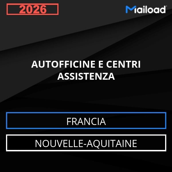 Il Database Email AUTOFFICINE E CENTRI ASSISTENZA (Nouvelle-Aquitaine – Francia) contiene 521 contatti aziendali unici, completi di indirizzo email e pronti all’uso per attività di Email Marketing B2B.