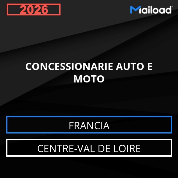 Il Database Email CONCESSIONARIE AUTO E MOTO (Centre-Val de Loire – Francia) contiene 111 contatti aziendali unici, completi di indirizzo email e pronti all’uso per attività di Email Marketing B2B.