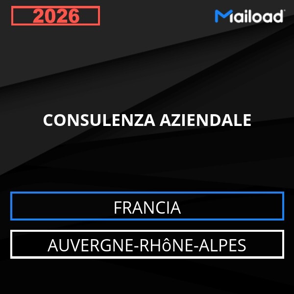 Il Database Email CONSULENZA AZIENDALE (Auvergne-Rhône-Alpes – Francia) contiene 274 contatti aziendali unici, completi di indirizzo email e pronti all’uso per attività di Email Marketing B2B.