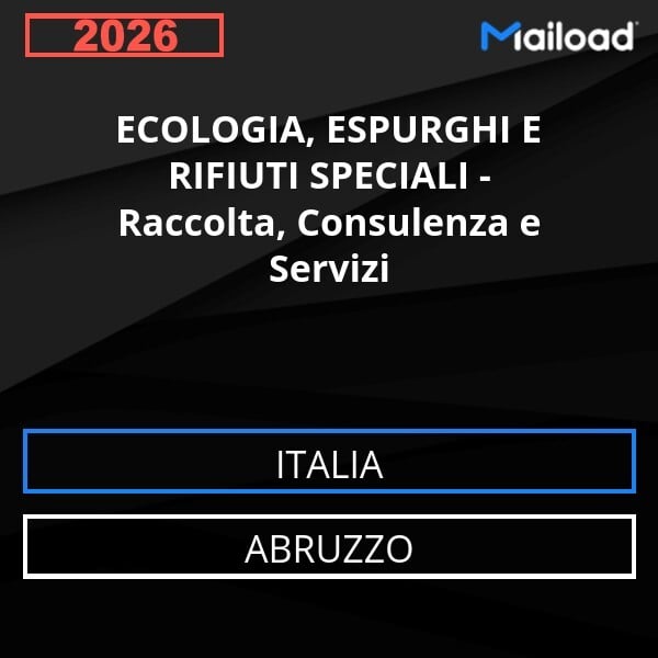 Il Database Email ECOLOGIA, ESPURGHI E RIFIUTI SPECIALI – Raccolta, Consulenza e Servizi (Abruzzo – Italia) contiene 79 contatti aziendali unici, completi di indirizzo email e pronti all’uso per attività di Email Marketing B2B.