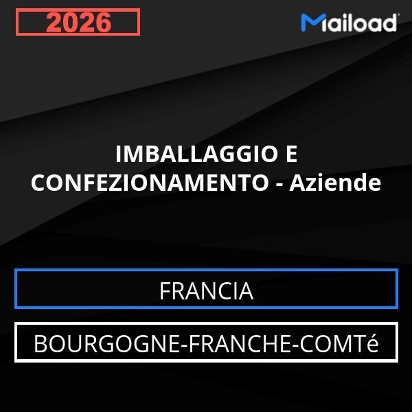 Il Database Email IMBALLAGGIO E CONFEZIONAMENTO – Aziende (Bourgogne-Franche-Comté – Francia) contiene 52 contatti aziendali unici, completi di indirizzo email e pronti all’uso per attività di Email Marketing B2B.