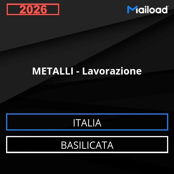 Il Database Email METALLI – Lavorazione (Basilicata – Italia) contiene 20 contatti aziendali unici, completi di indirizzo email e pronti all’uso per attività di Email Marketing B2B.