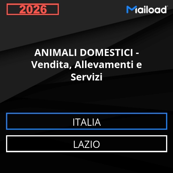 Il Database Email ANIMALI DOMESTICI – Vendita, Allevamenti e Servizi (Lazio – Italia) contiene 412 contatti aziendali unici, completi di indirizzo email e pronti all’uso per attività di Email Marketing B2B.