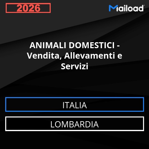 Il Database Email ANIMALI DOMESTICI – Vendita, Allevamenti e Servizi (Lombardia – Italia) contiene 992 contatti aziendali unici, completi di indirizzo email e pronti all’uso per attività di Email Marketing B2B.