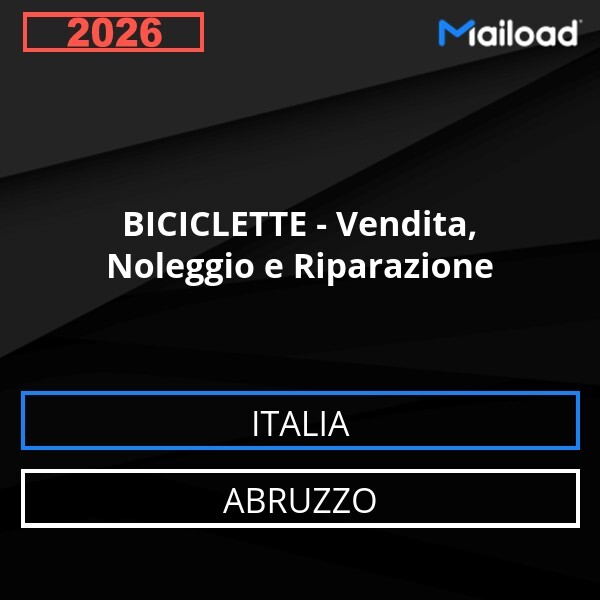 Il Database Email BICICLETTE – Vendita, Noleggio e Riparazione (Abruzzo – Italia) contiene 72 contatti aziendali unici, completi di indirizzo email e pronti all’uso per attività di Email Marketing B2B.