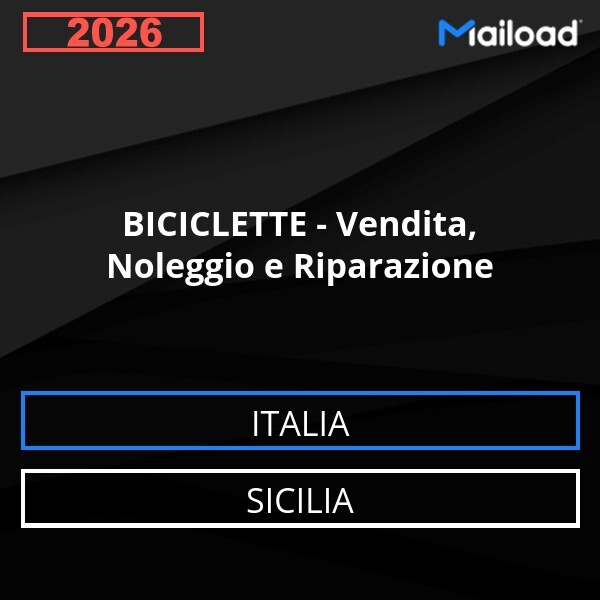 Il Database Email BICICLETTE – Vendita, Noleggio e Riparazione (Sicilia – Italia) contiene 150 contatti aziendali unici, completi di indirizzo email e pronti all’uso per attività di Email Marketing B2B.