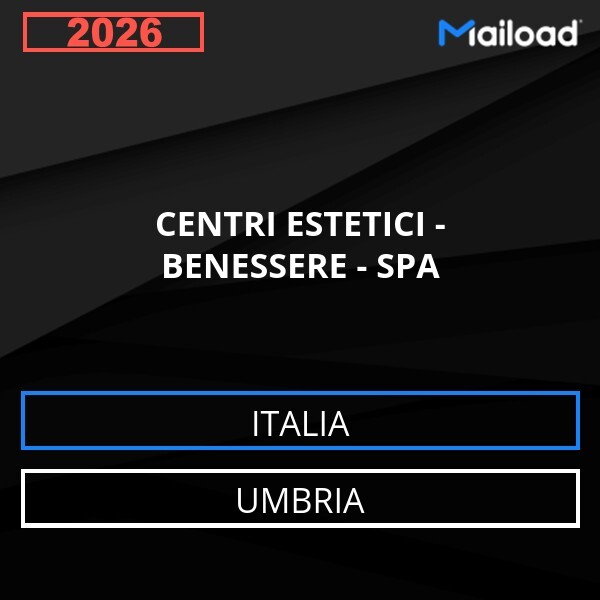 Il Database Email CENTRI ESTETICI – BENESSERE – SPA (Umbria – Italia) contiene 141 contatti aziendali unici, completi di indirizzo email e pronti all’uso per attività di Email Marketing B2B.