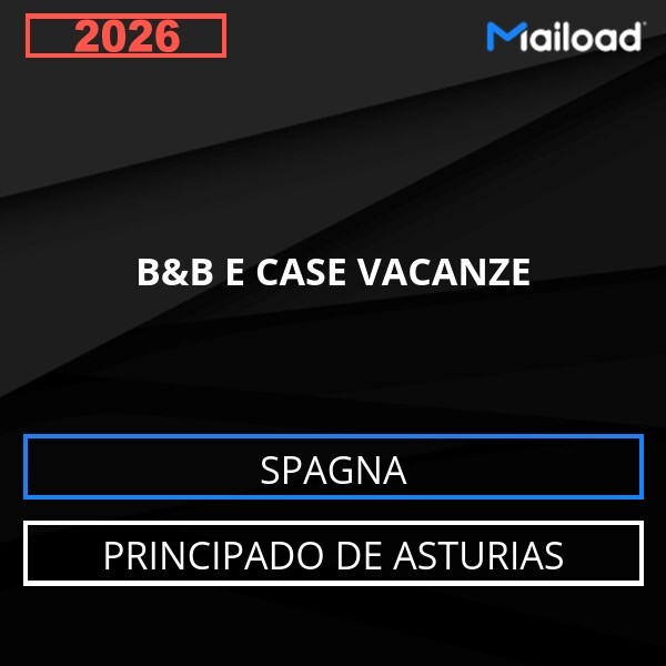 Il Database Email B&B E CASE VACANZE (Principado de Asturias – Spagna) contiene 430 contatti aziendali unici, completi di indirizzo email e pronti all’uso per attività di Email Marketing B2B.
