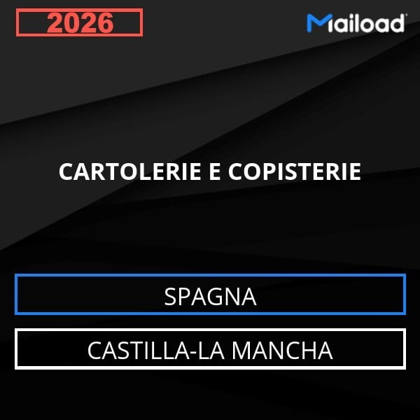 Il Database Email CARTOLERIE E COPISTERIE (Castilla-La Mancha – Spagna) contiene 45 contatti aziendali unici, completi di indirizzo email e pronti all’uso per attività di Email Marketing B2B.
