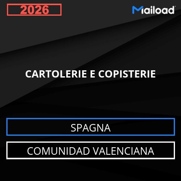 Il Database Email CARTOLERIE E COPISTERIE (Comunidad Valenciana – Spagna) contiene 119 contatti aziendali unici, completi di indirizzo email e pronti all’uso per attività di Email Marketing B2B.