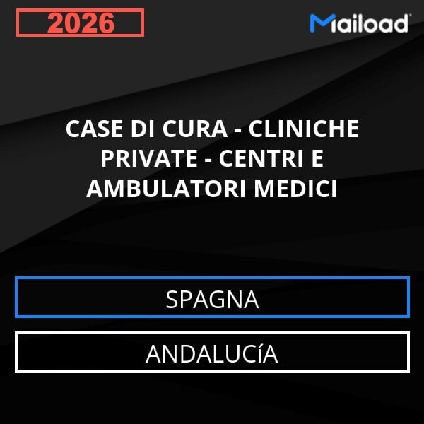 Il Database Email CASE DI CURA – CLINICHE PRIVATE – CENTRI E AMBULATORI MEDICI (Andalucía – Spagna) contiene 312 contatti aziendali unici, completi di indirizzo email e pronti all’uso per attività di Email Marketing B2B.
