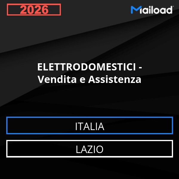 Il Database Email ELETTRODOMESTICI – Vendita e Assistenza (Lazio – Italia) contiene 157 contatti aziendali unici, completi di indirizzo email e pronti all’uso per attività di Email Marketing B2B.