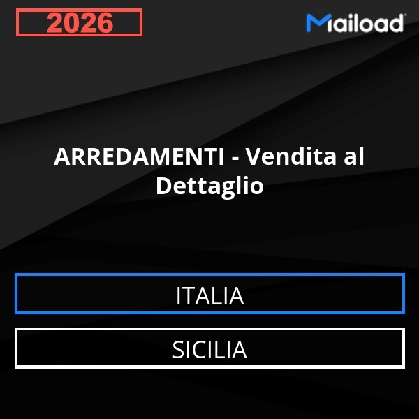 Il Database Email ARREDAMENTI – Vendita al Dettaglio (Sicilia – Italia) contiene 559 contatti aziendali unici, completi di indirizzo email e pronti all’uso per attività di Email Marketing B2B.