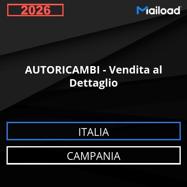 Il Database Email AUTORICAMBI – Vendita al Dettaglio (Campania – Italia) contiene 227 contatti aziendali unici, completi di indirizzo email e pronti all’uso per attività di Email Marketing B2B.