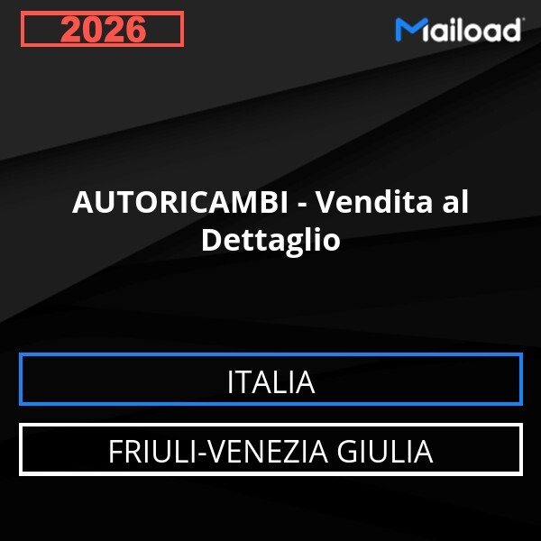 Il Database Email AUTORICAMBI – Vendita al Dettaglio (Friuli-Venezia Giulia – Italia) contiene 47 contatti aziendali unici, completi di indirizzo email e pronti all’uso per attività di Email Marketing B2B.